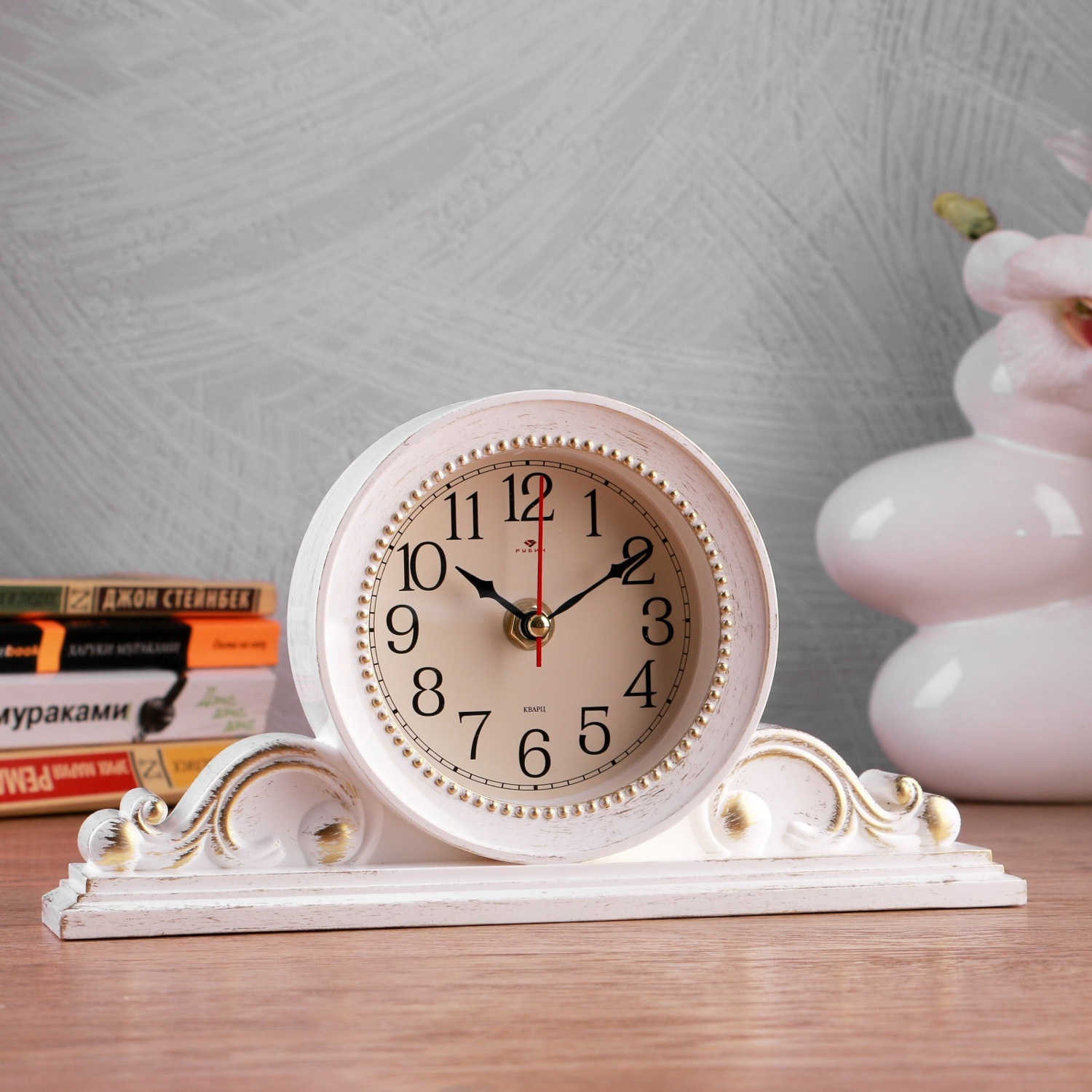 Часы настольные "Милица" 26х14 см, корпус белый с золотом 4833055