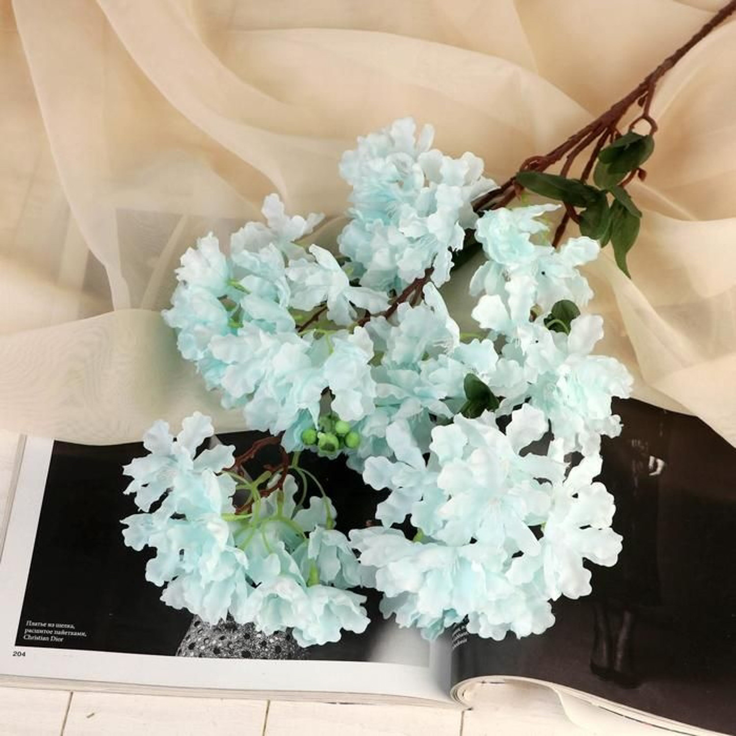 Цветы искусственные "Фиалка на ветке" 5х80 см, голубой 3562526