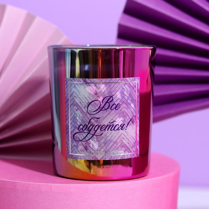 Свеча в голографическом стакане «Все сбудется!», 8,5 х 8 х 8 см 5077512
