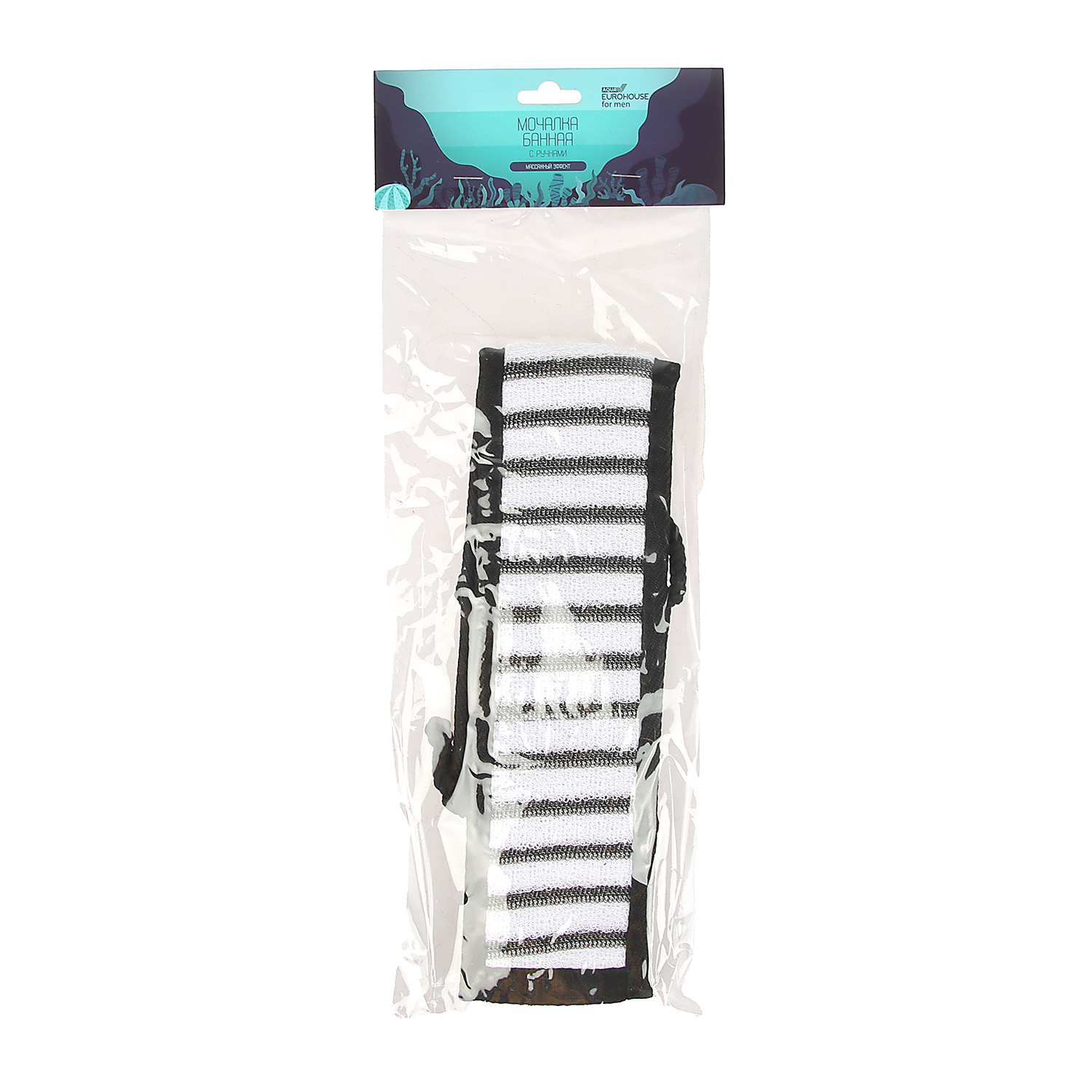 Мочалка для тела банная махровая 65х8см (80х8см с ручками) ЕВРОХАУС  *12/125