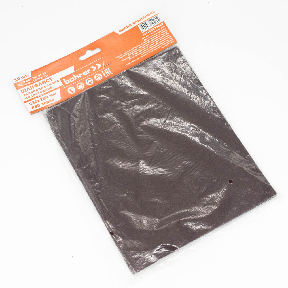 Шлифшкурка 230*280 зерно 80 оксид алюминия водостойкая тканевая (10шт) арт.55232808 Bohrer *1/50