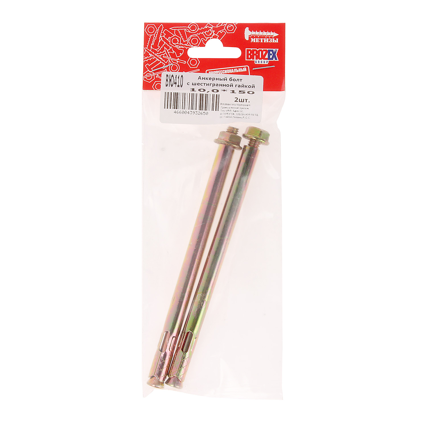 Анкер с гайкой 10х150 (2шт) пакет BROZEX *10/100