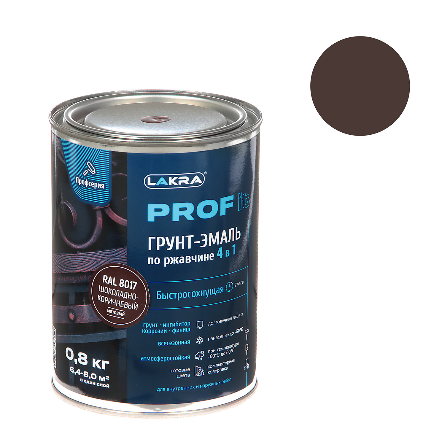 Грунт-эмаль по ржавчине 4 в 1 быстросохнущая Шоколадно-коричневая 0,8 кг RAL8017 PROF IT *1/10