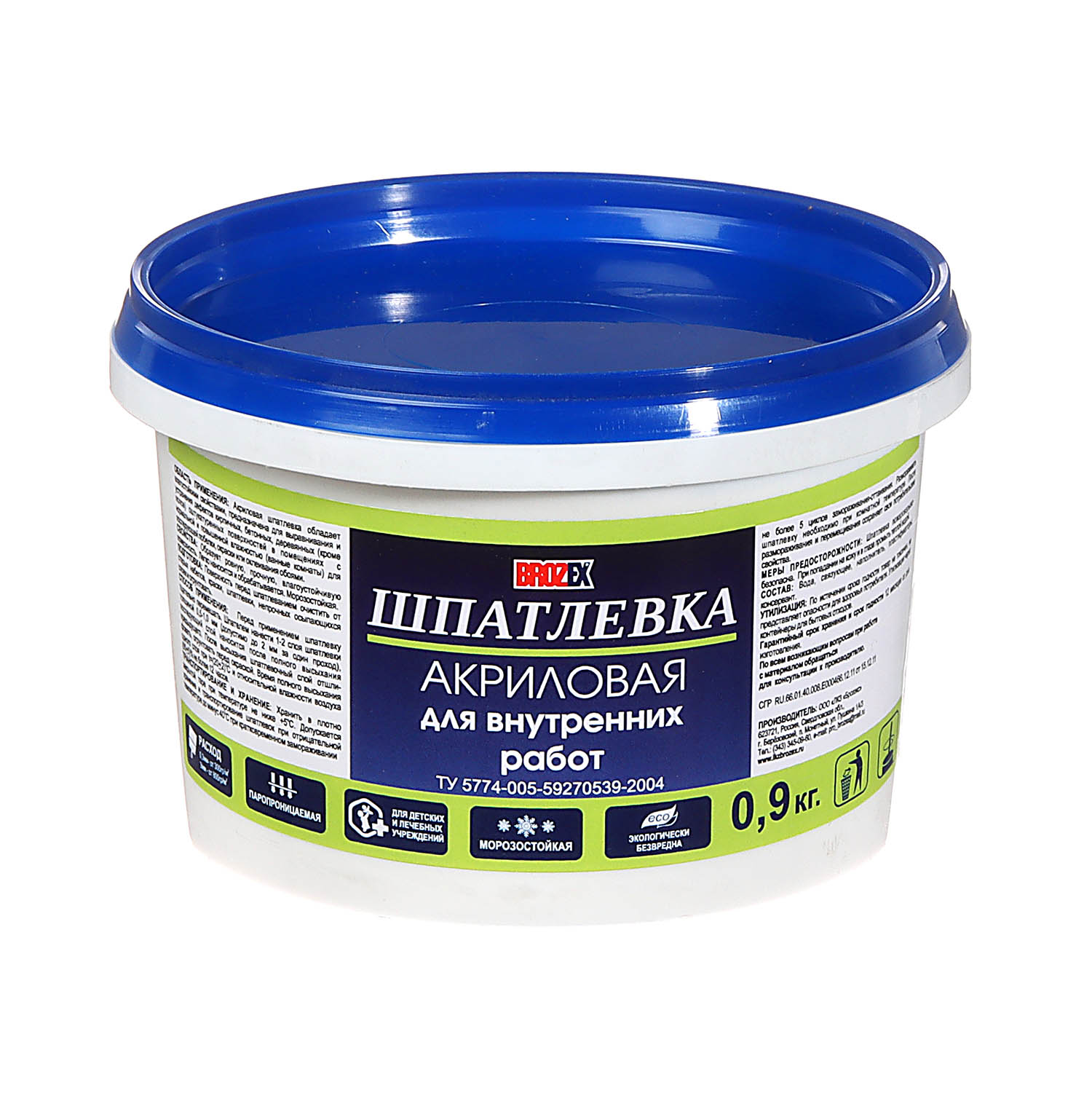 Шпатлевка акриловая BROZEX 0.9 кг образует ровное прочное влагостойкое покрытие. Легко наносится и обрабатывается. Используется внутри помещений для обработки стен, потолков.