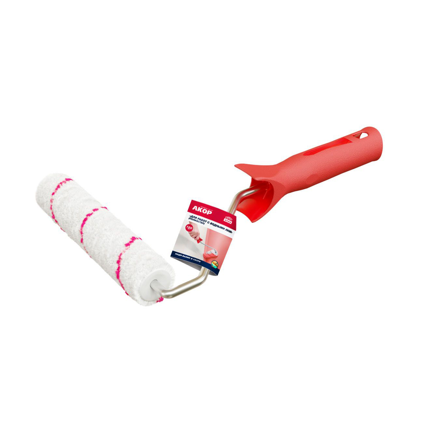 Валик-миди 160мм в сборе д/работ с водными ЛКМ,d-25мм,ворс9мм,ручка30см,полиэстр (Акор) *1/35