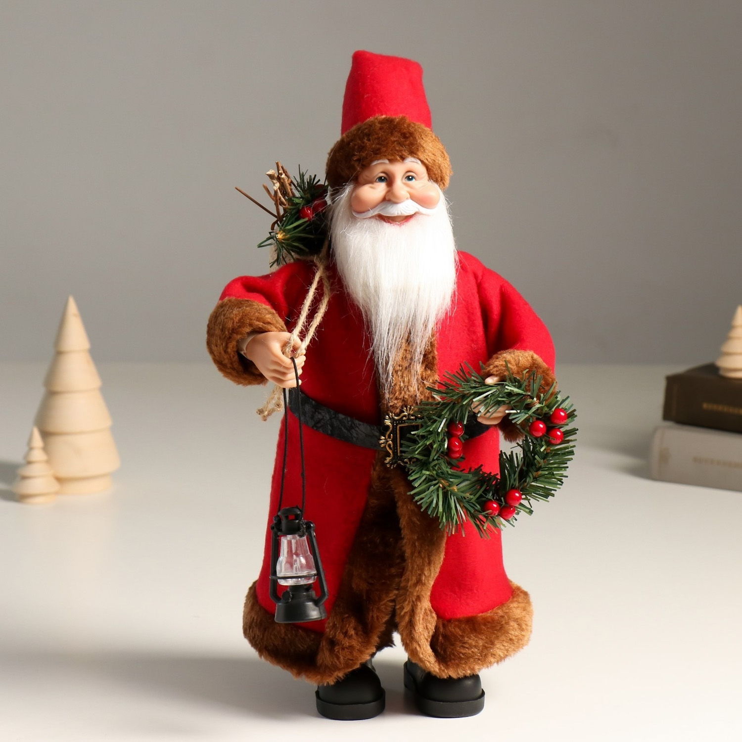 Кукла интерьерная "Дед Мороз с подарками, веночком и фонариком" 37 см 9488062