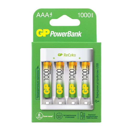 Зарядное устройство д/аккумуляторов GP (АА-ААА) (4 аккум ААА в комплекте) 411100AAAHC-2CRB4  *1/12