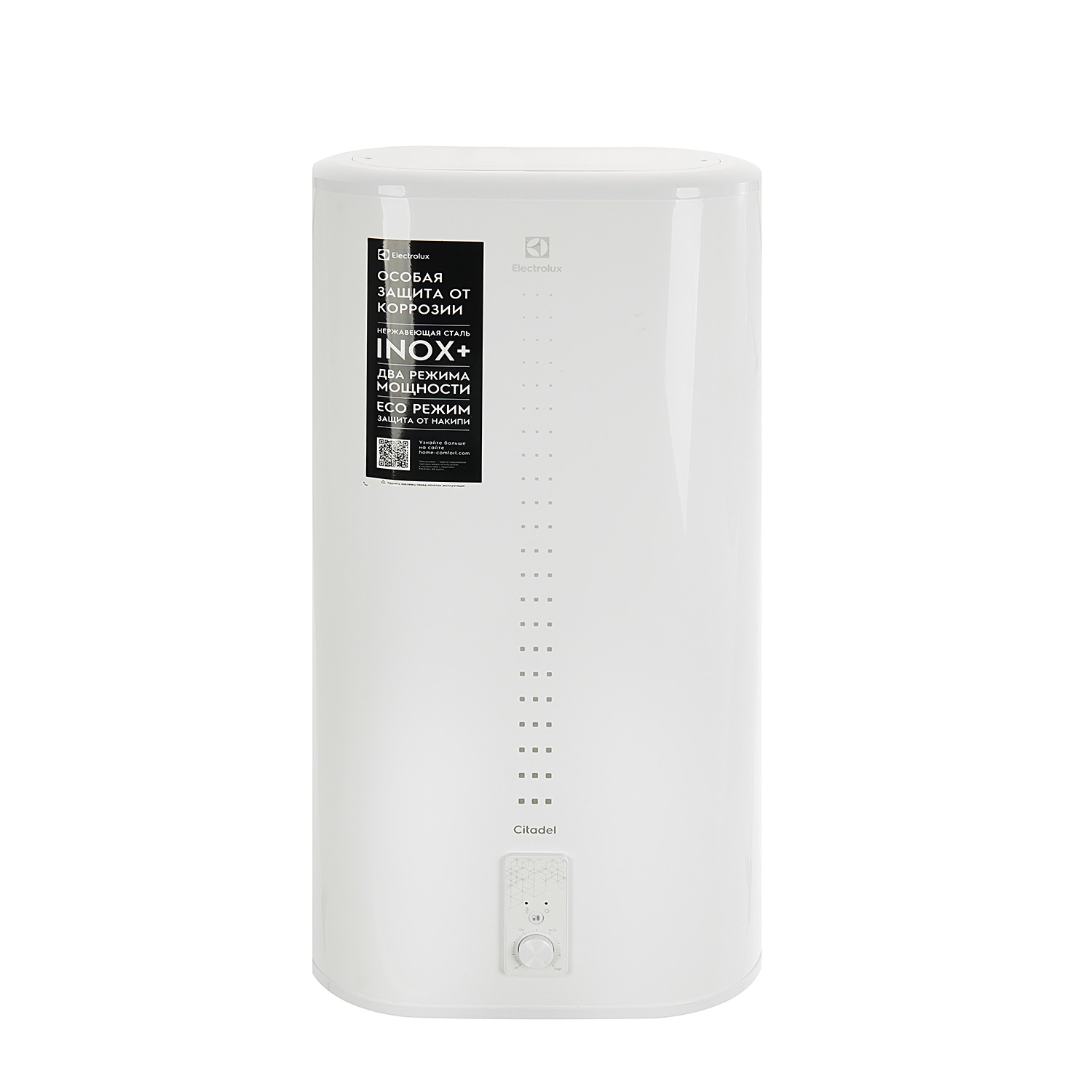 Водонагреватель Electrolux EWH 50 Citadel имеет компактные размеры и устанавливается вертикально. Внутренний бак сделан из нержавеющей стали с низким содержанием углерода — это препятствует появлению коррозии. Экономичный режим будет нагревать воду только до 55 °С, чтобы внутри нагревательных элементов не образовалась накипь. Защита от сухого нагрева отключает ТЭН, если в баке нет воды.