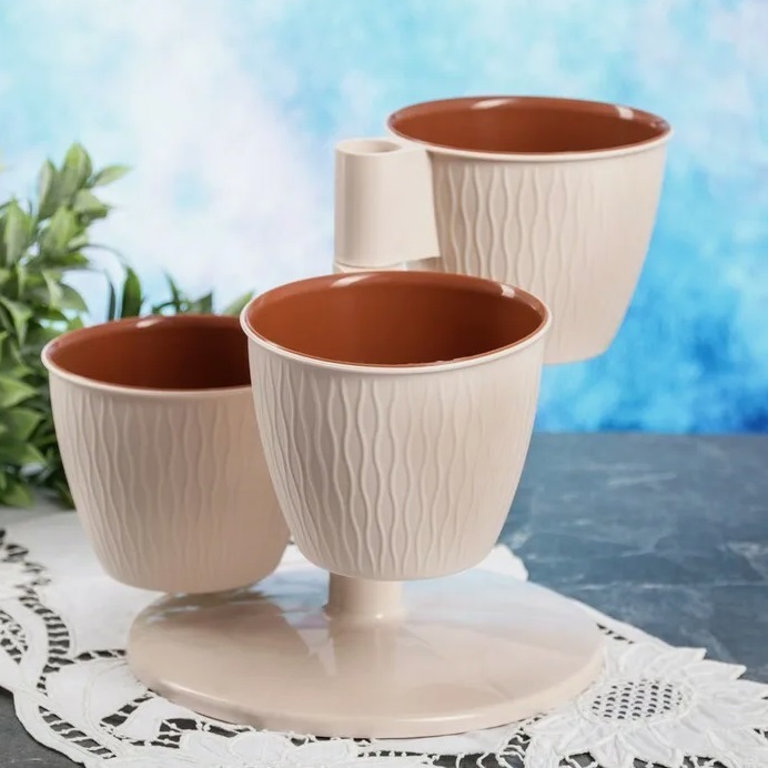 Кашпо-"Каскад" 3-х местная пластм. "Пирамида"  d верха 125мм h100мм со вставками Пудра *1/10