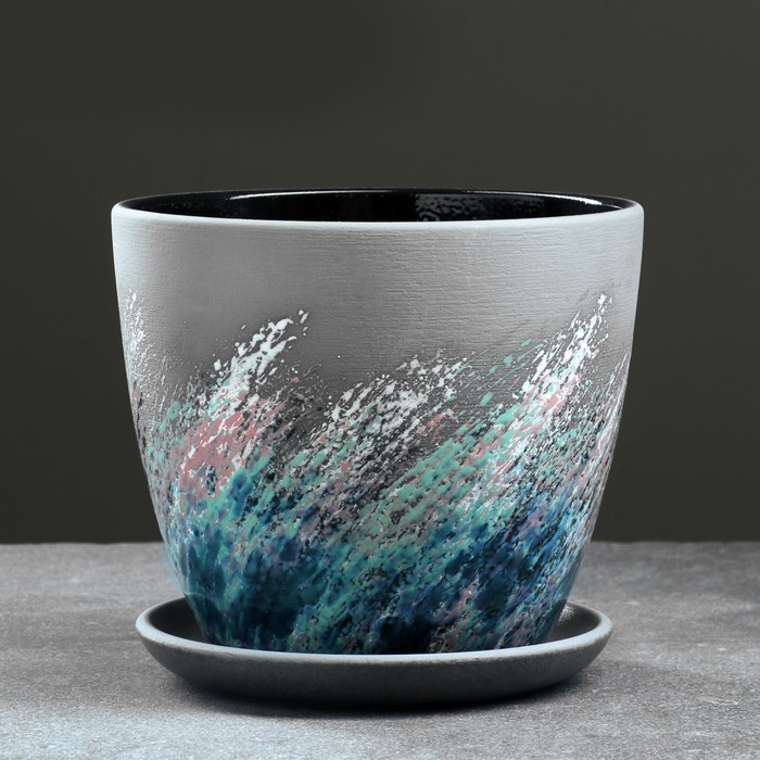 Кашпо керам. Крокус Живопись 1,36л d верха 149мм h133мм с поддоном черный №2 КС-К2-203-15 *9