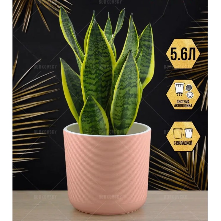 Кашпо пластм. "Лион"  5,6л d верха 210мм h195мм со вставкой Розовый-вереск ЛИ21-20 *1/4