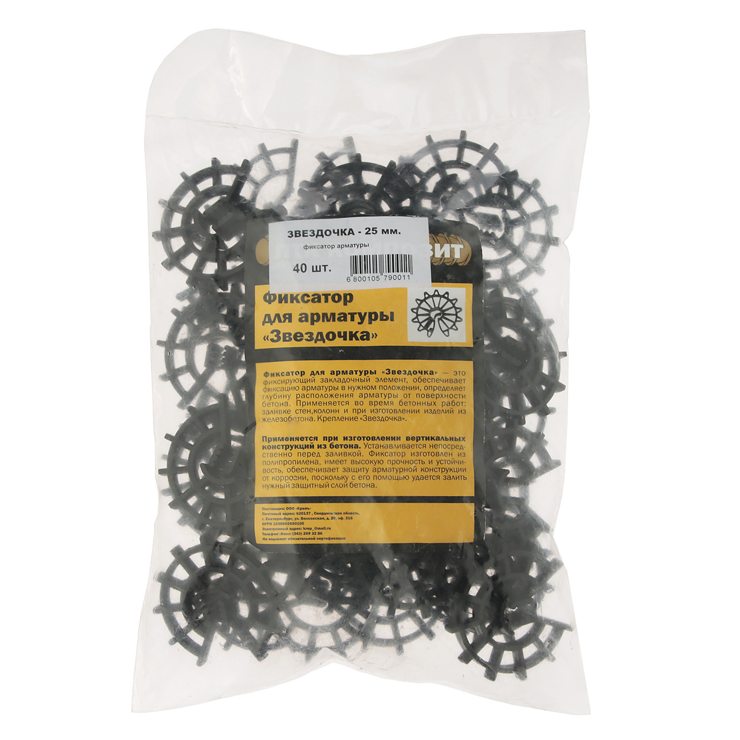Фиксатор арматуры «Звездочка» 25 мм — это закладочный элемент, который используется в монолитном строительстве для соблюдения защитного слоя — расстояния от опалубки до арматуры. Обеспечивает фиксацию арматуры в нужном положении и определяет, насколько глубоко она расположится от поверхности бетона. Изготовлен из полипропилена, очень прочен и устойчив, обеспечивает защиту арматуры от коррозии. «Звездочку» применяют при заливке вертикальных конструкций: стен, колонн, пилонов, а также при изготовлении железобетонных изделий.