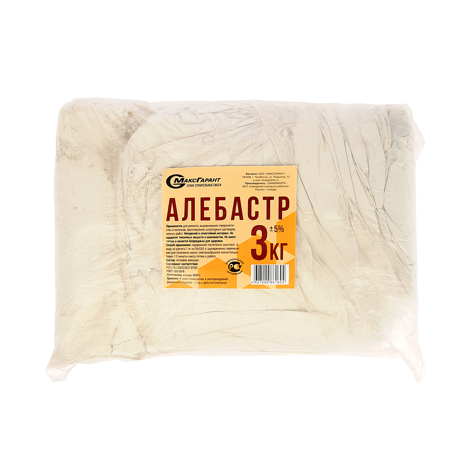 Алебастр (гипс) штукатурный LeafAR 3 кг — материал замедленного срока схватывания, применяемый в бытовых и строительных целях. Не содержит токсичных компонентов и не имеет запаха. Негорючий и огнестойкий. Обладает такими химическими свойствами, которые позволяют гипсовому раствору быстро набирать плотность, благодаря чему в помещении получается отличная звукоизоляция.