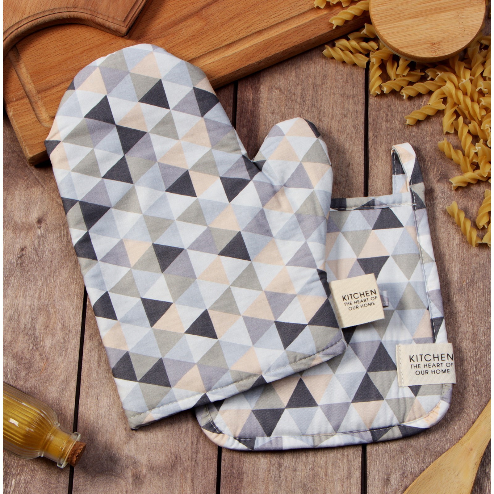 Набор прихваток Треугольники варежка-прихватка 20х28см, прихватка 19х19см 80%хлопок, 20%п/э Этель *1