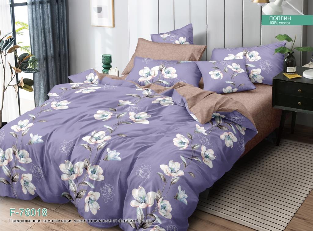 Постельное белье 2сп поплин на резинке Орхидея F-76018, наволочки 70*70 - 2шт *1/4