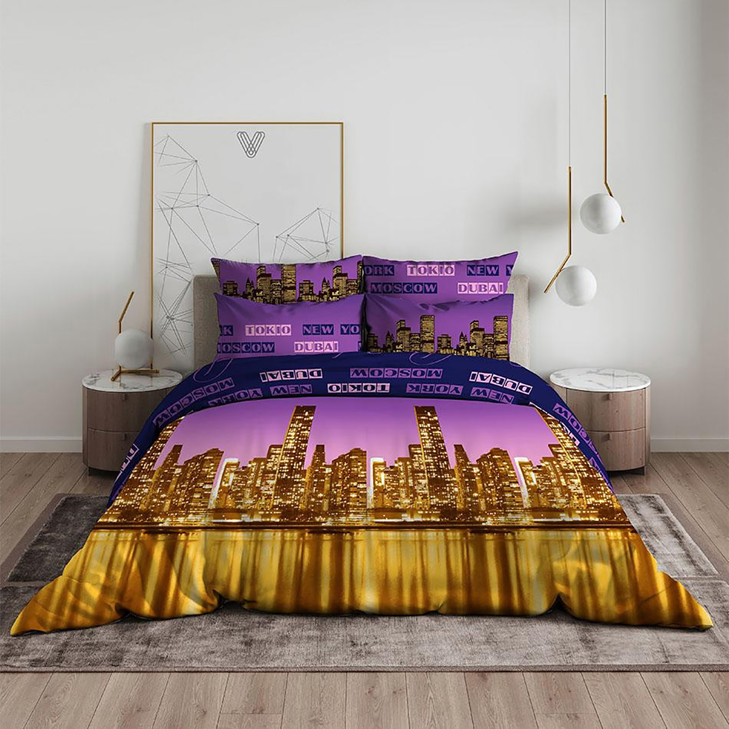 Постельное белье 1,5сп бязь Василиса 3698/1 Ночной город нав70*70,пр150*214 *1/6