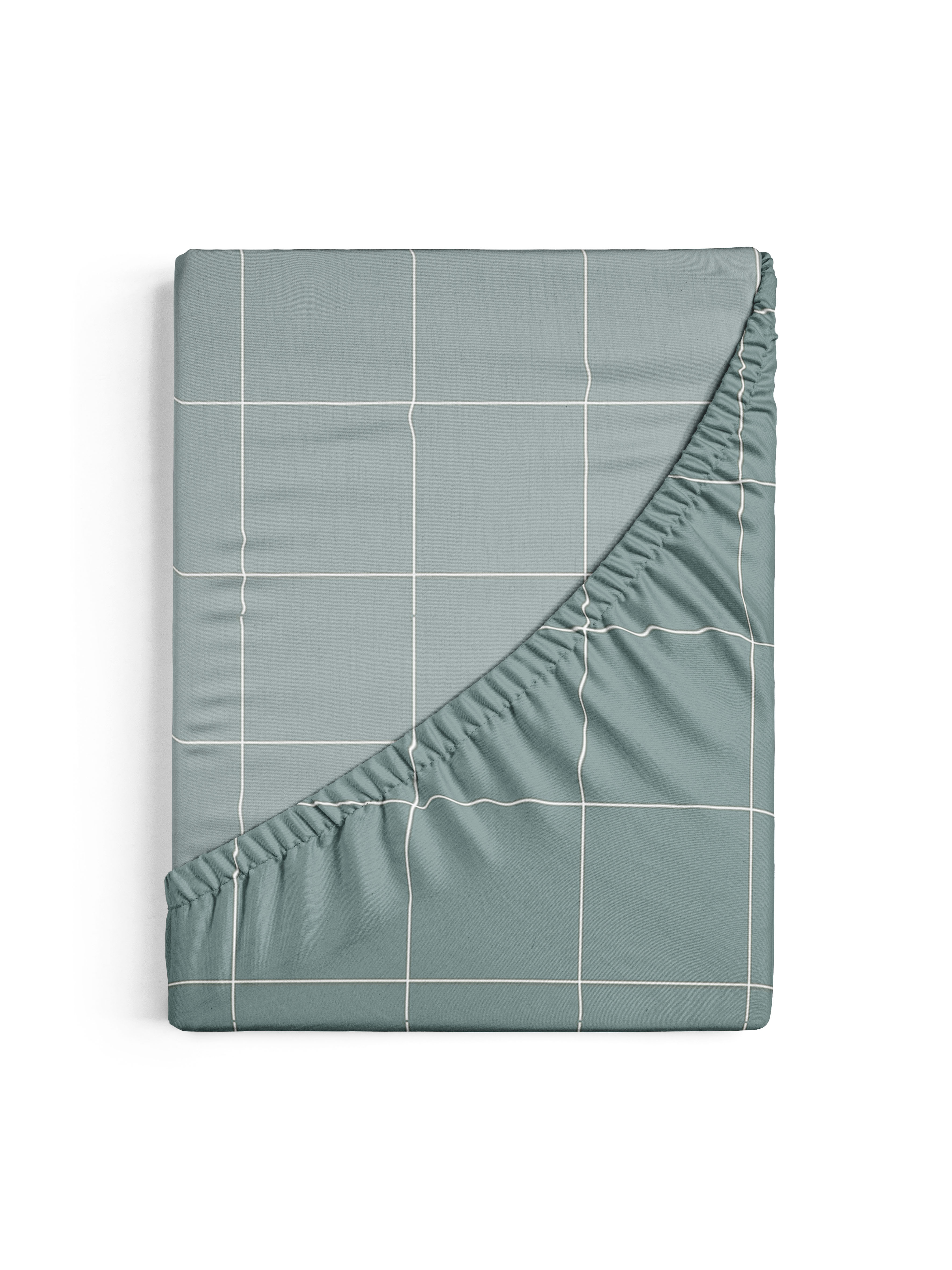 Простыня на резинке поплин (160*200+25см) Niteva 21297-1 клетка голубой *1/10