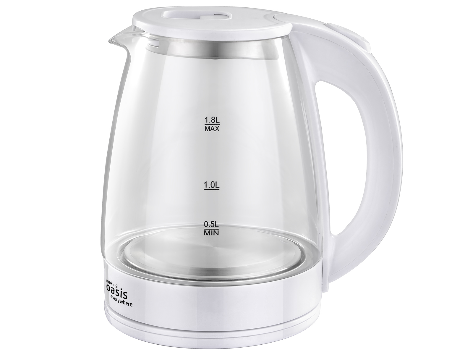 Чайник электрический стекло 1,8л 2000Вт Oasis K-8GW белый, автооткл, шкала уровня воды *1/12