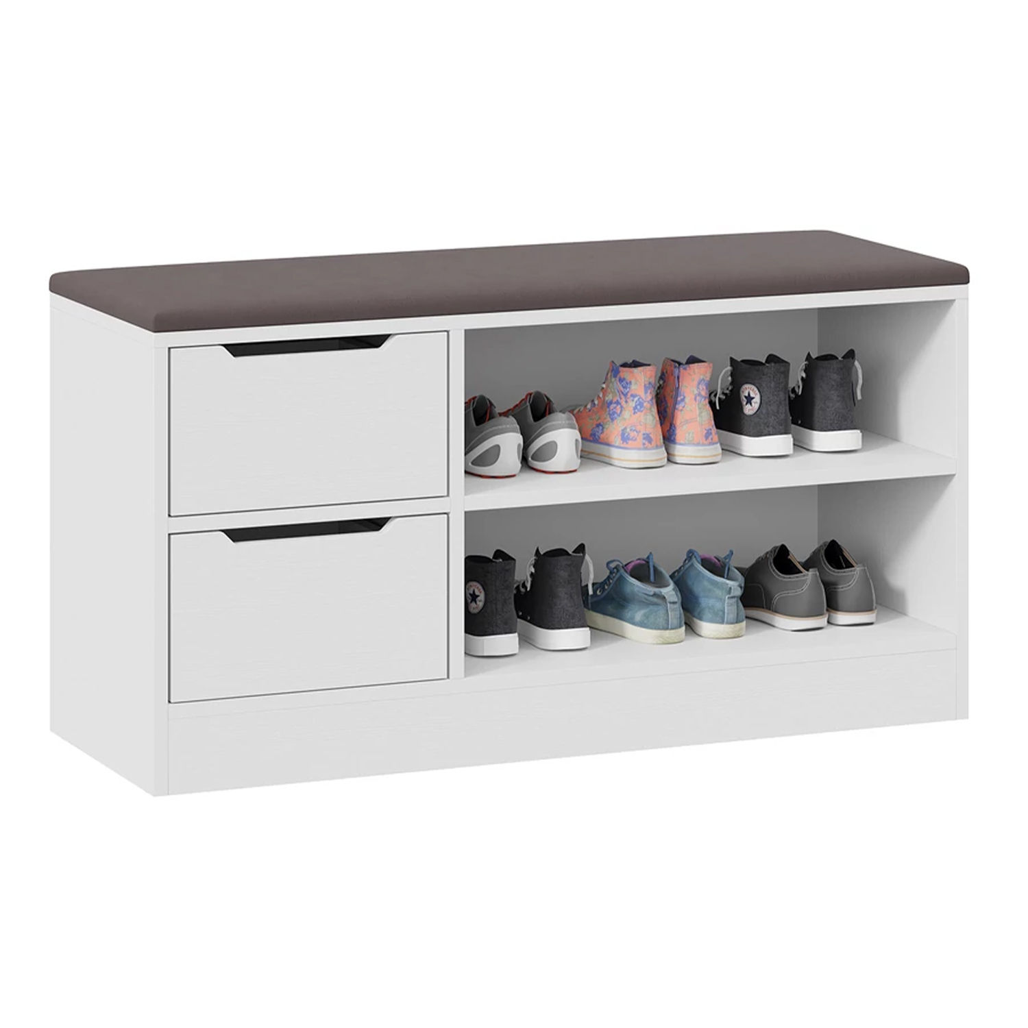 Обувница 535*350*970 Тип13 БЕЛЫЙ ЯСЕНЬ/ВЕЛЮР серый ТриЯ *1