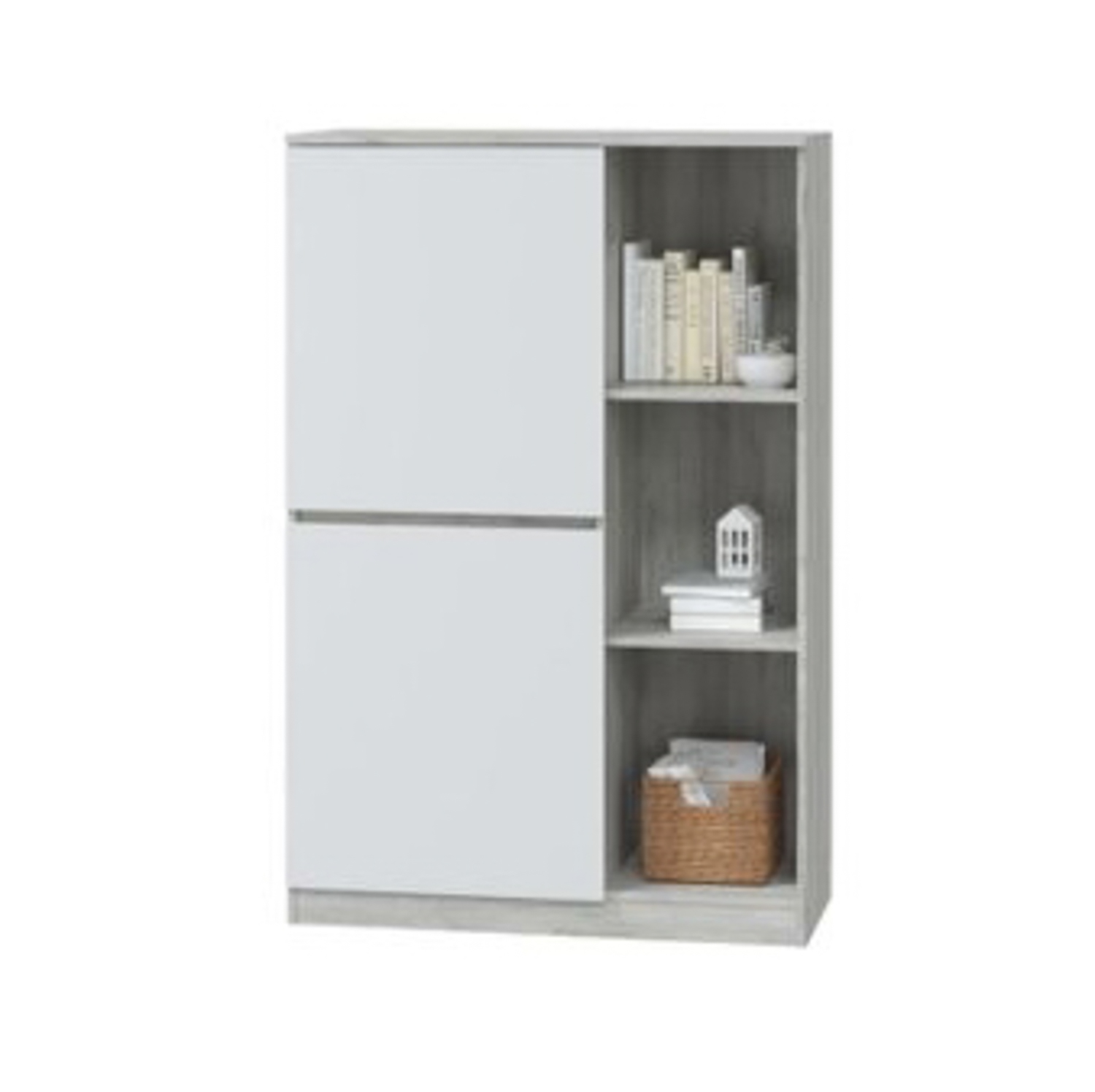 Шкаф ЛОРИ-гостиная для книг 2-х дверный, 950 *450*1443 мм, дуб серый/белый*1