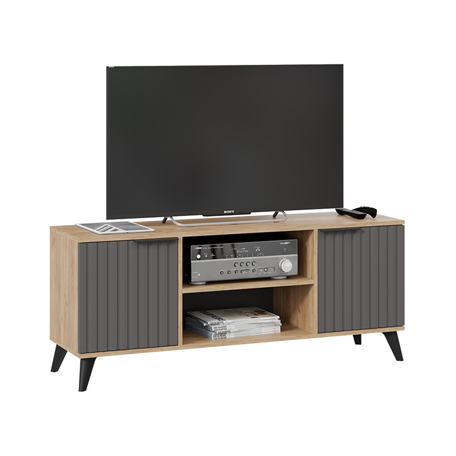 Тумба под ТВ Исп.2 1335*374*452  (Дуб крафт золотой/Графит матовый) Хилтон*1