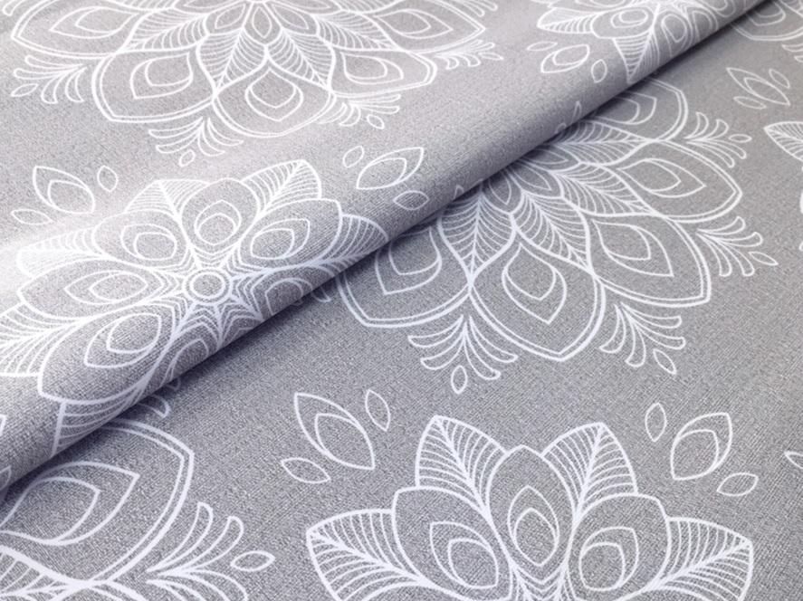 Клеёнка на тканевой основе "Print" "Белые узоры" серый фон шир.1,37м GW-21402 "Great Way" *20