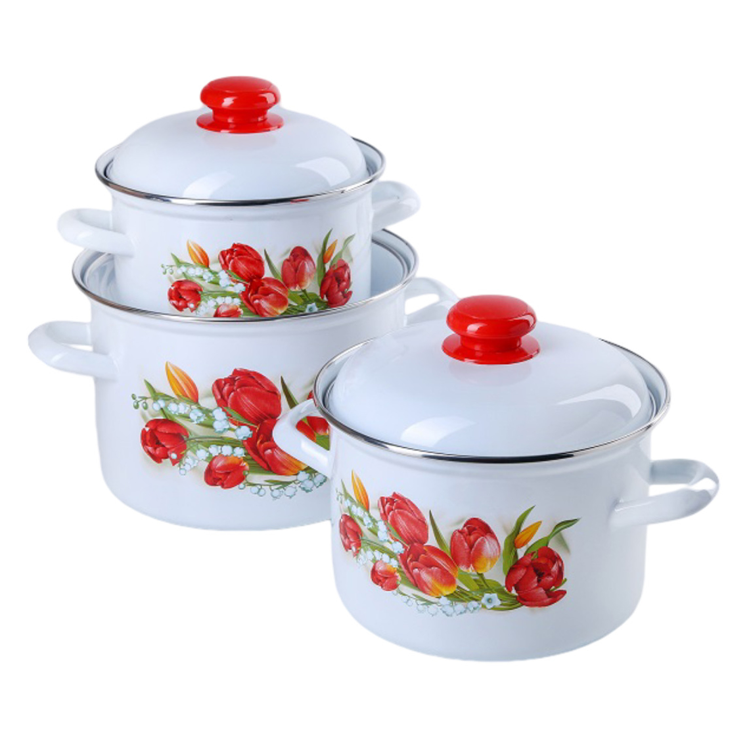 яяяНабор кастрюль эмалированных: 2,0л+3,5л+5,0л рис. "Ласковый май" С-207АП2/4 "Лысьвенс ЭМАЛИ" *1