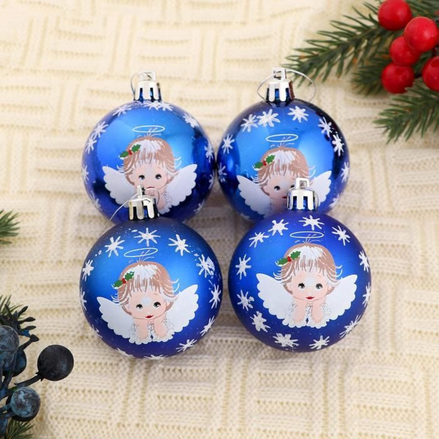 Набор шаров пластик d-6 см, 8 шт "Ангелочек" синий 4941852
