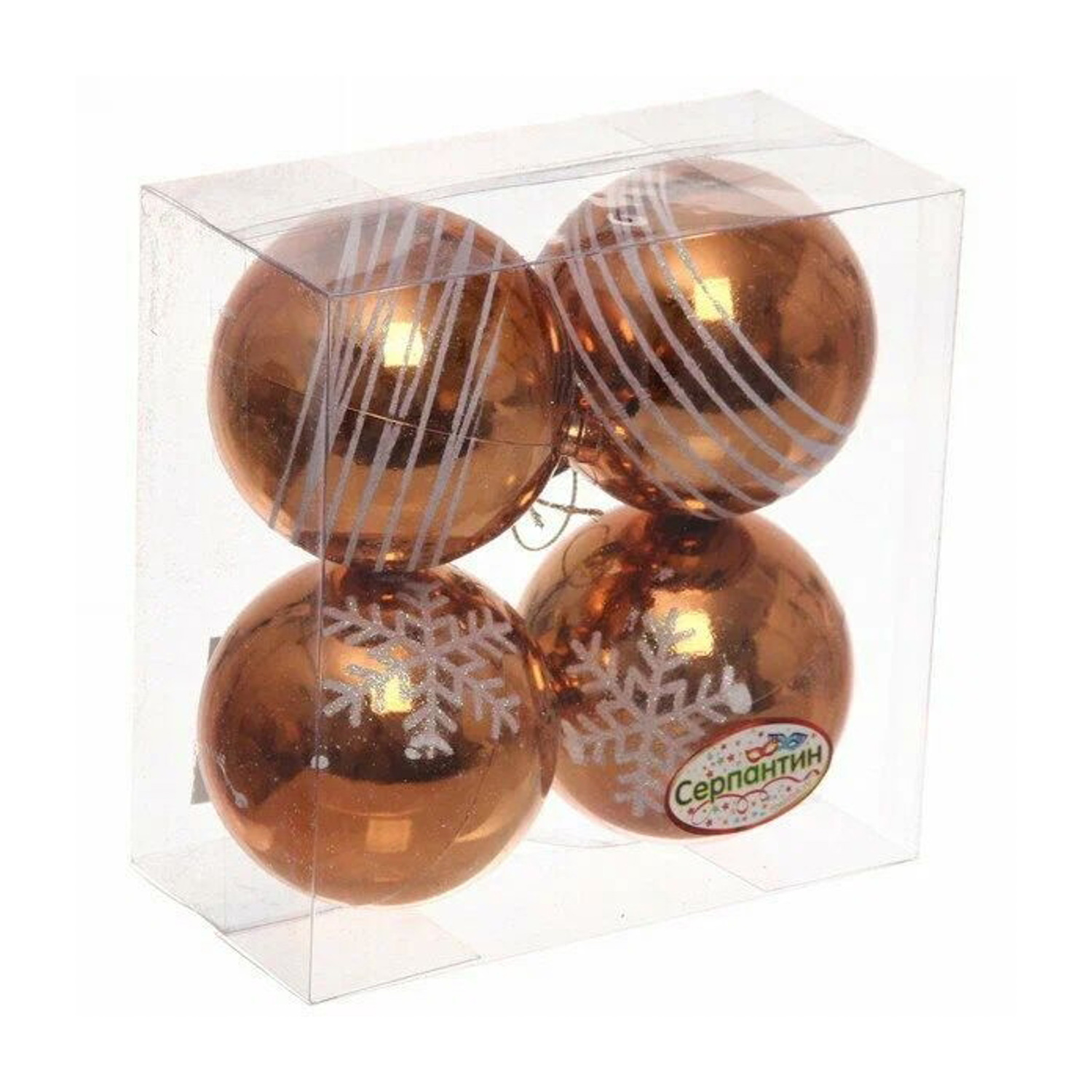 Новогодние шары 6 см (набор 4 шт) "Снежные нити", оранжевый/белый