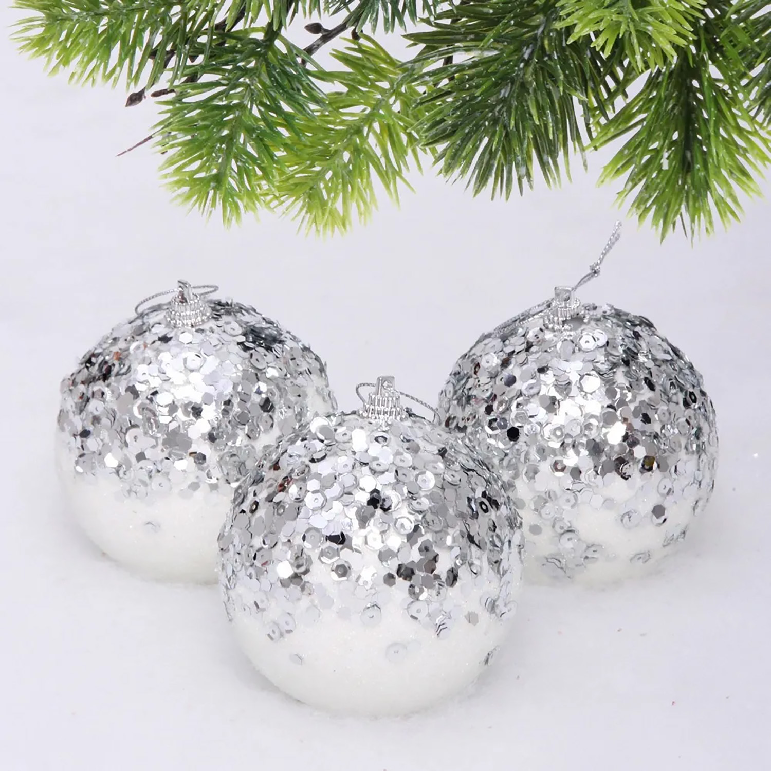 Новогодние шары "GLAME - Блеск" 8 см (набор 3 шт), Белый