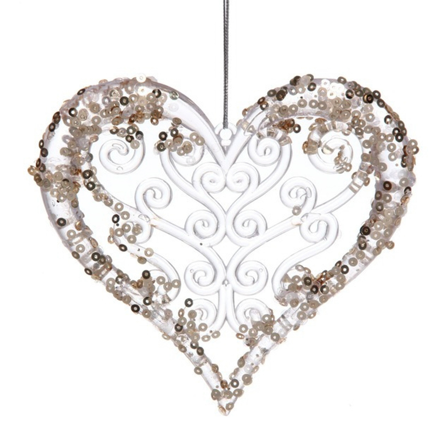 Подвеска "Сказочное сердце" 12 см, Белый/Золотой блеск