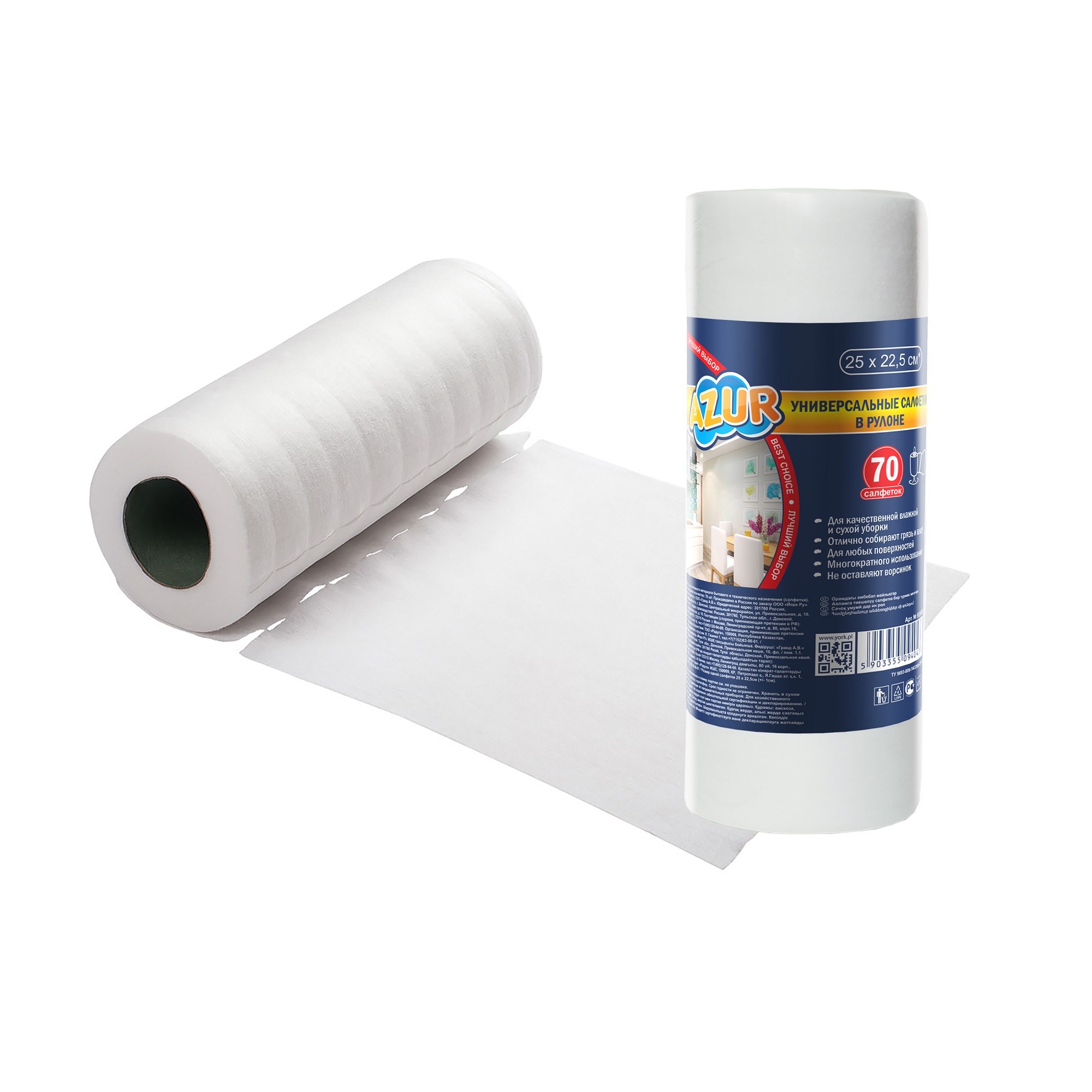 Салфетки д/уборки в Рулоне 25х22,5см 70шт "салфетка универсальная" 920400 "York" *1/20