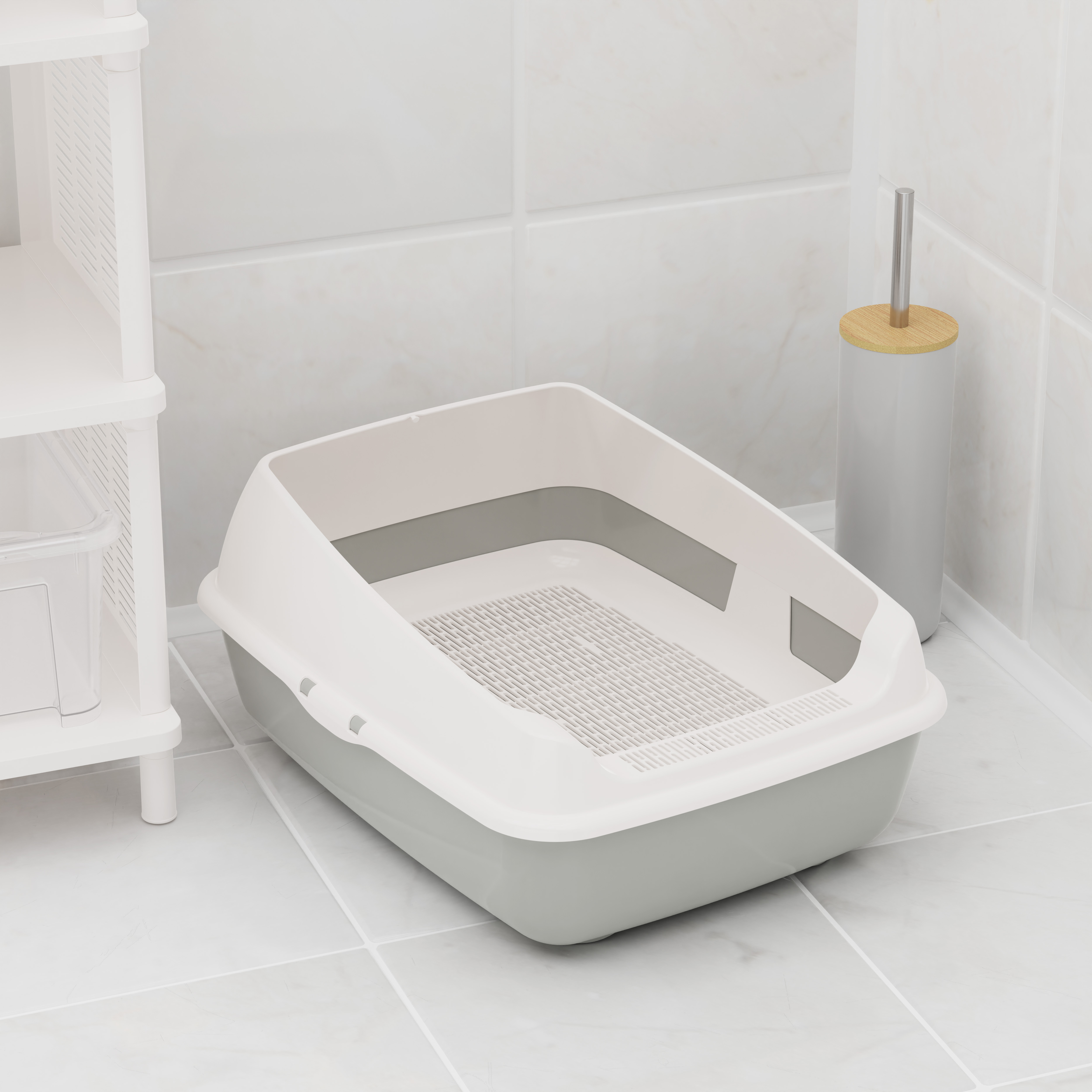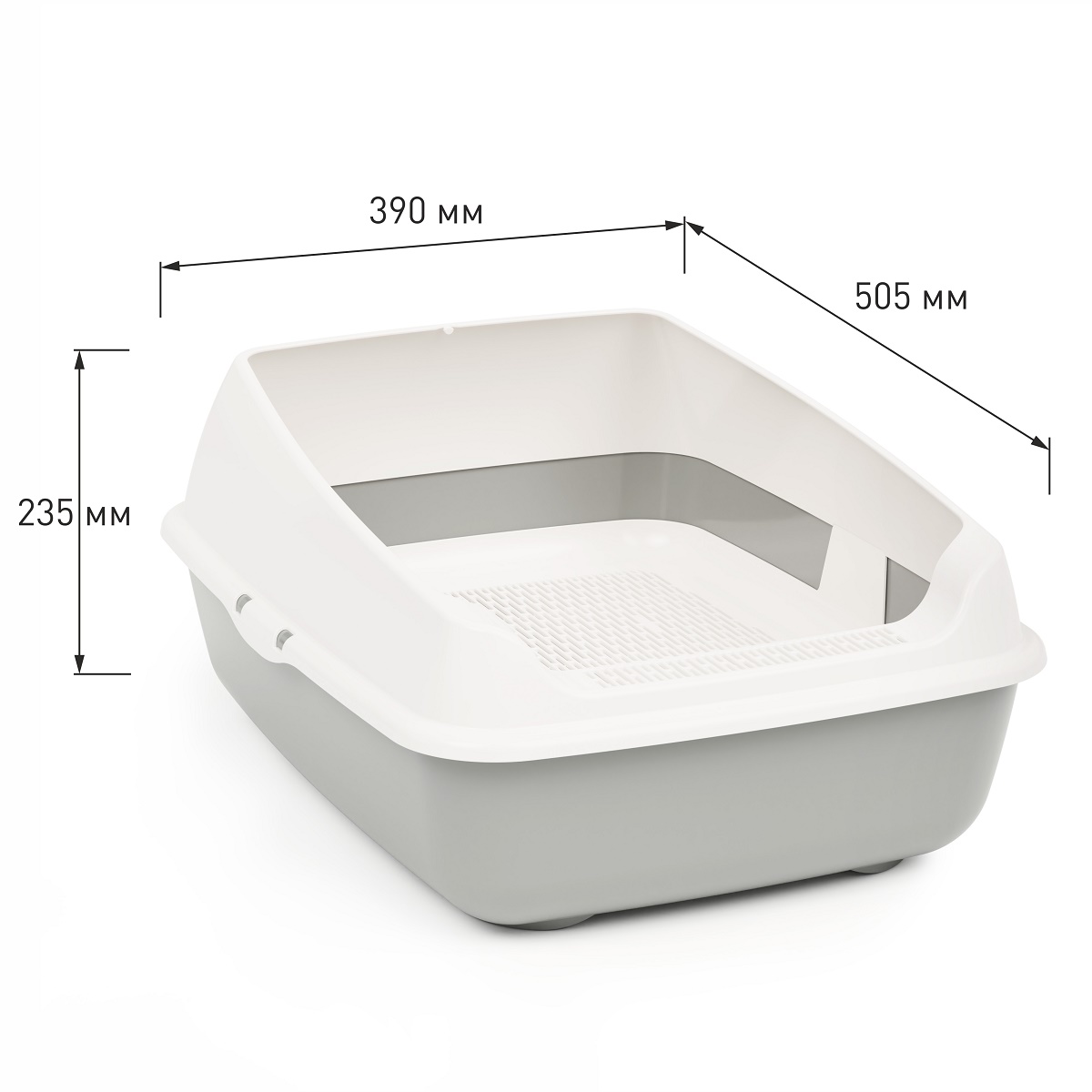 Лоток-"туалет для кошек" пластм. с высокими бортами 505х390х235мм съем.Решет. арт.М8577 *1/4