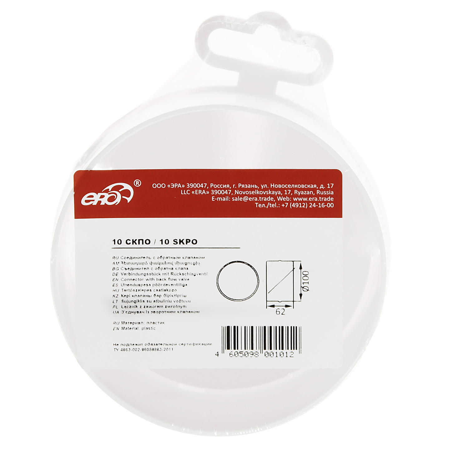Соединитель воздуховода круглый Ø100мм (обратный клапан) 10СКПО *1/24